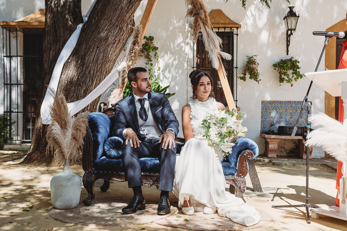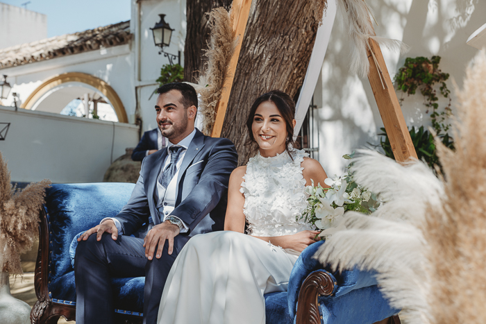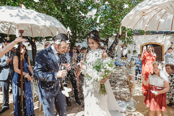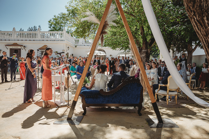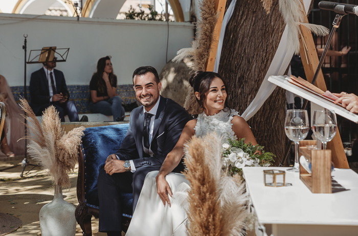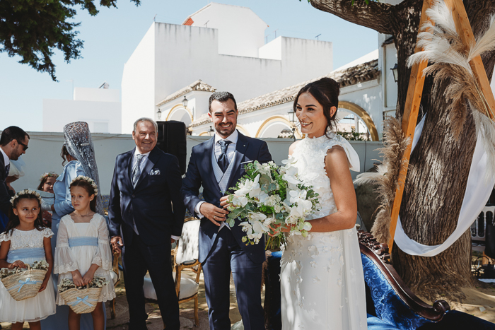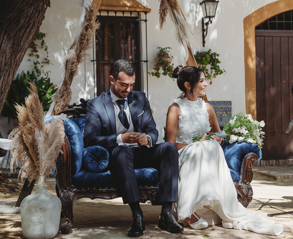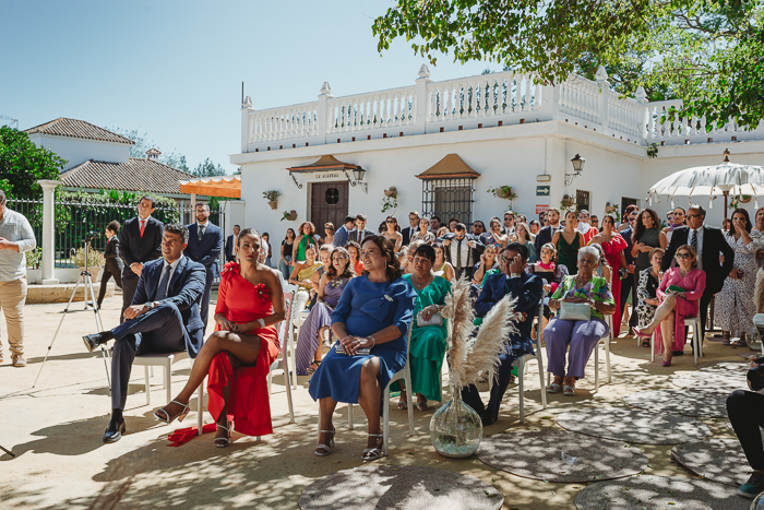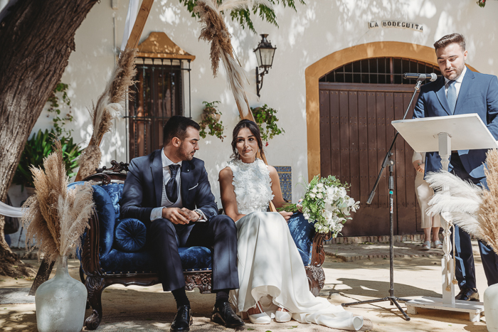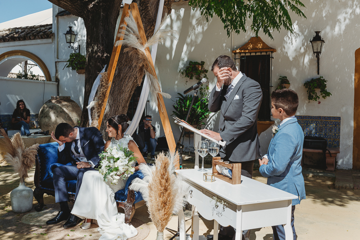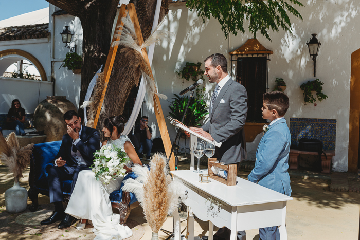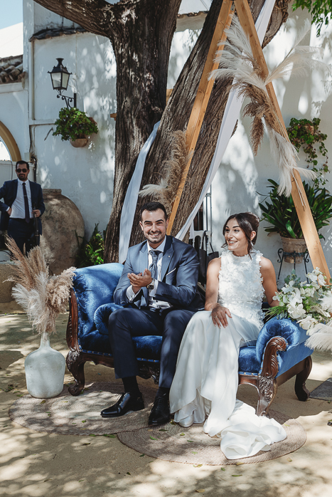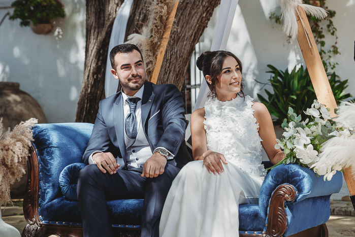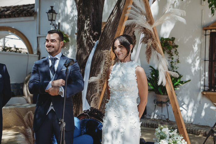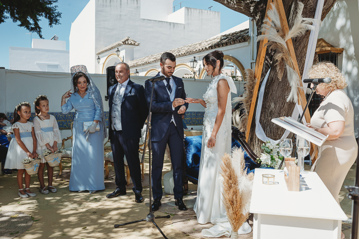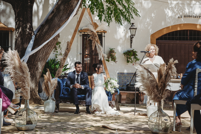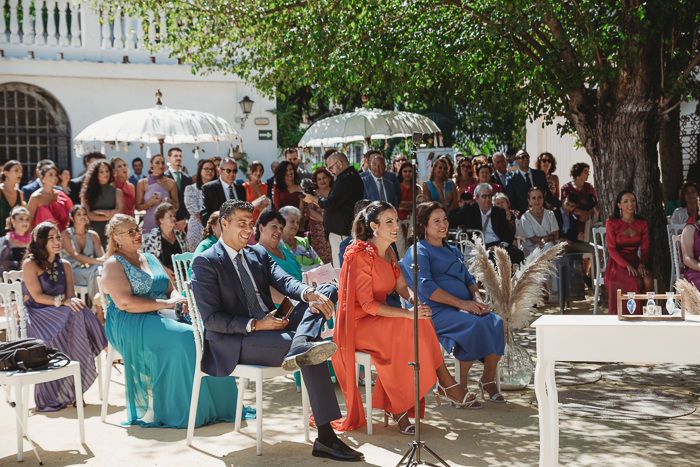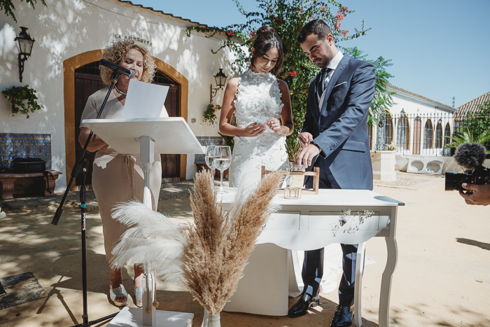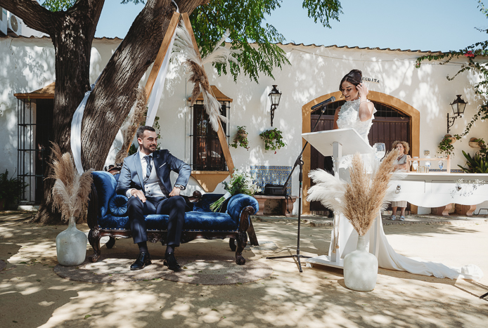 Una ceremonia civil que tuvo lugar en el propio jardín del Salón del Ojo de Lebrija, pueblo natal de María, a la sombra de árboles se celebró el enlace con lecturas de familiares y amigos que sacaron más de una carcajada y momentos emotivos a los allí presentes.
